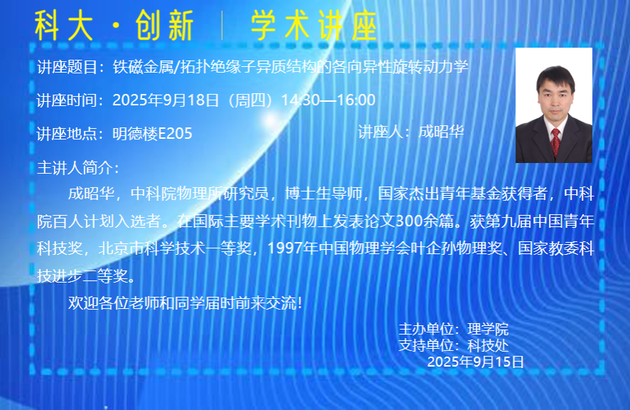 讲座时间:2025年9月18日(周四)14:30—16:00