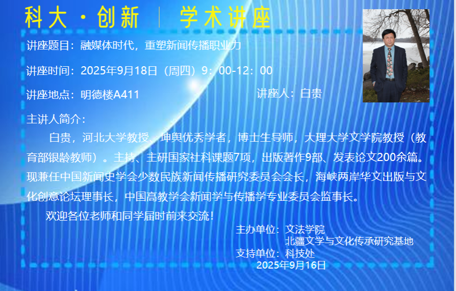 讲座题目:融媒体时代,重塑新闻传播职业力